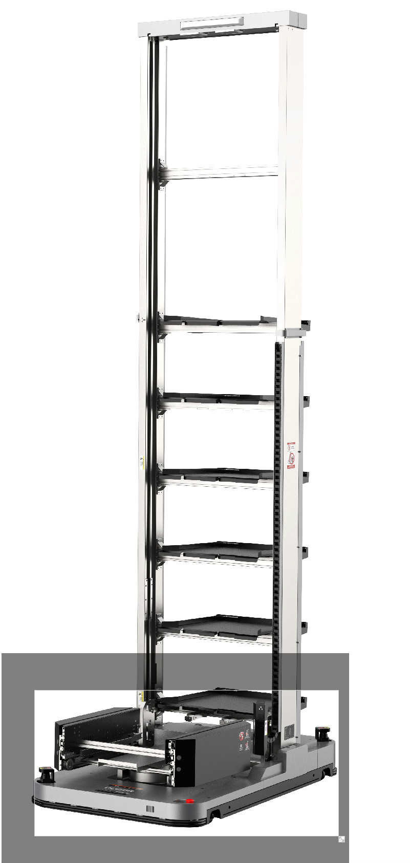 車身低矮,可以進(jìn)入低矮的料架地下?tīng)恳?。潛伏牽引并且雙向運(yùn)行可以使轉(zhuǎn)彎半徑縮小,占地面積小。 驅(qū)動(dòng)單元一鍵電動(dòng)升降方便維護(hù)。最多可以指定1024個(gè)站點(diǎn)。 激光傳感器安全防護(hù)到位